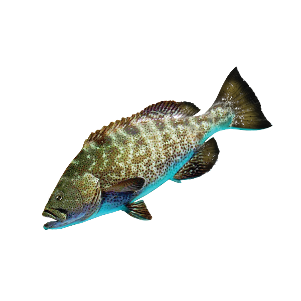 Black grouper are one of the most abundant large groupers in Florida waters, but rarely seen. They tend to shy away from swimmers. Commercially fished in many places, their populations are generally declining as a result. They are solitary except when they congregate to spawn. Adults feed on smaller reef fish such as grunts and snapper.